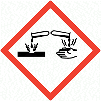 terdiri dari 2 gambar yang tertetesi cairan korosif. Simbol ini